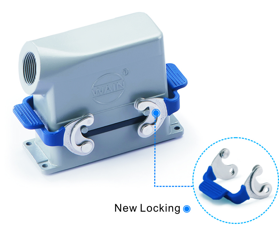 WAIN研發(fā)的SC系列鎖扣裝置,采用高強(qiáng)度不銹鋼一體式設(shè)計(jì),完全避免斷裂的可能性,即使在惡劣的環(huán)境下長(zhǎng)年使用,也可確保其功能完整。鎖扣主體一體成型,且在主體兩外側(cè)設(shè)置彈性件用于鎖緊插頭與插座部分,彈性件采用月牙形彈性件,外觀獨(dú)特,結(jié)構(gòu)巧妙;優(yōu)質(zhì)的NBR包膠材料,手柄部的手感更好;在鎖扣的過(guò)程中滾輪結(jié)構(gòu)能使之鎖扣得更順暢。一種連接器鎖扣結(jié)構(gòu)已取得實(shí)用新型專利,專利號(hào)為201420344473.9。作為矩形連接器外殼鎖扣裝置,SC系列產(chǎn)品可廣泛應(yīng)用于軌道交通、電力控制柜等行業(yè)。