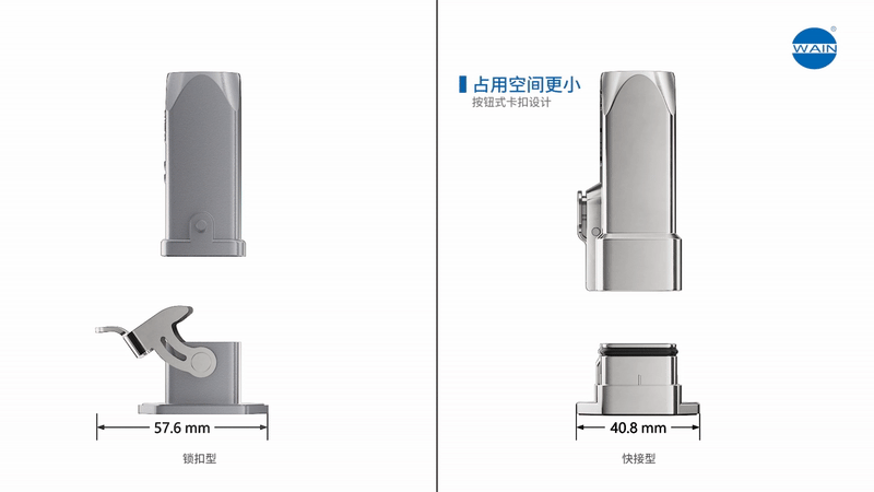 在機柜集成度飆升的智能制造時代,連接器空間占用已成為制約設(shè)備緊湊化的關(guān)鍵瓶頸。傳統(tǒng)鎖扣型外殼因解鎖位移需額外預(yù)留操作空間,導(dǎo)致機柜布線密度難以突破。WAIN快接型W3A金屬外殼通過彈簧輔助卡扣機構(gòu)與零外擴解鎖設(shè)計,實現(xiàn)安裝空間壓縮,為工業(yè)設(shè)備的高密度部署提供底層硬件支持。